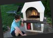 nach Stuer. Den Nachmittag verbringen wir im Ferienhaus. Leo sitzt auf der Wiese